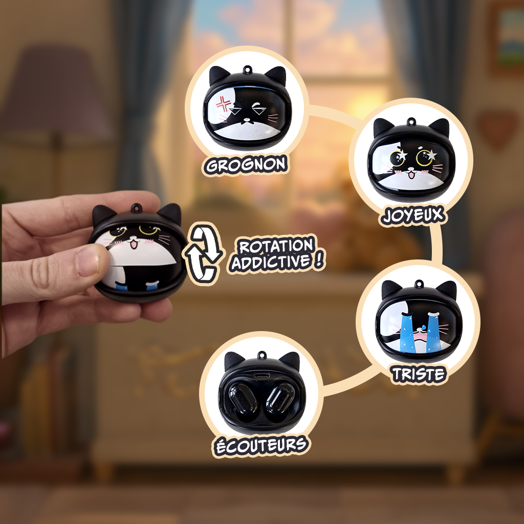 Moody Cat n’est pas un simple accessoire audio. C’est un compagnon fun et attachant, pensé pour écouter, jouer et afficher son humeur.